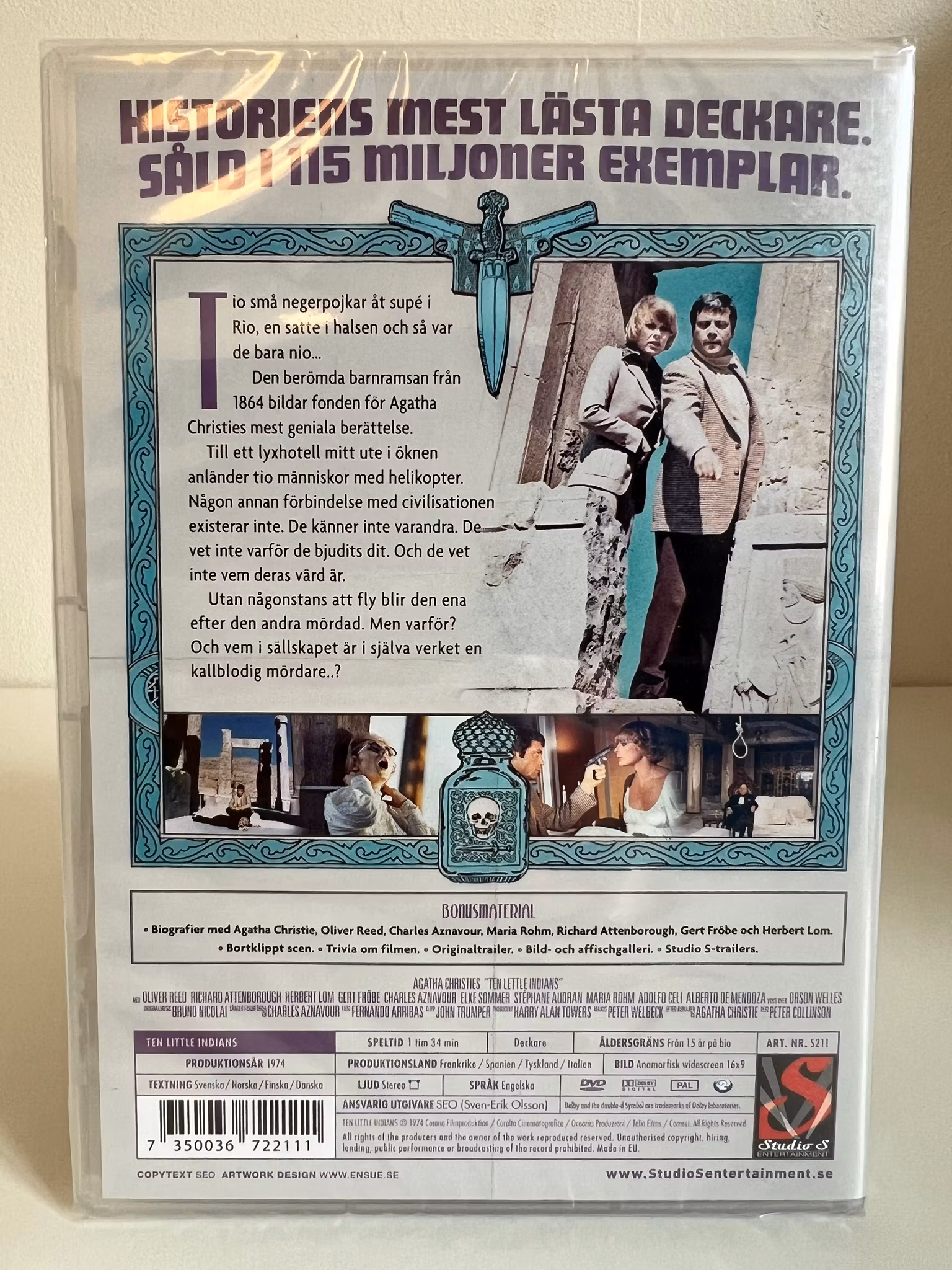 Den berömda barnramsan frÄn 1864 bildar fonden för Agatha Christies mest geniala berÀttelse. Till ett lyxhotell mitt ute i öknen anlÀnder tio mÀnniskor med helikopter. NÄgon annan förbindelse med civilisationen existerar inte. De kÀnner inte varandra. De vet inte varför de bjudits dit. Och de vet inte vem deras vÀrd Àr.