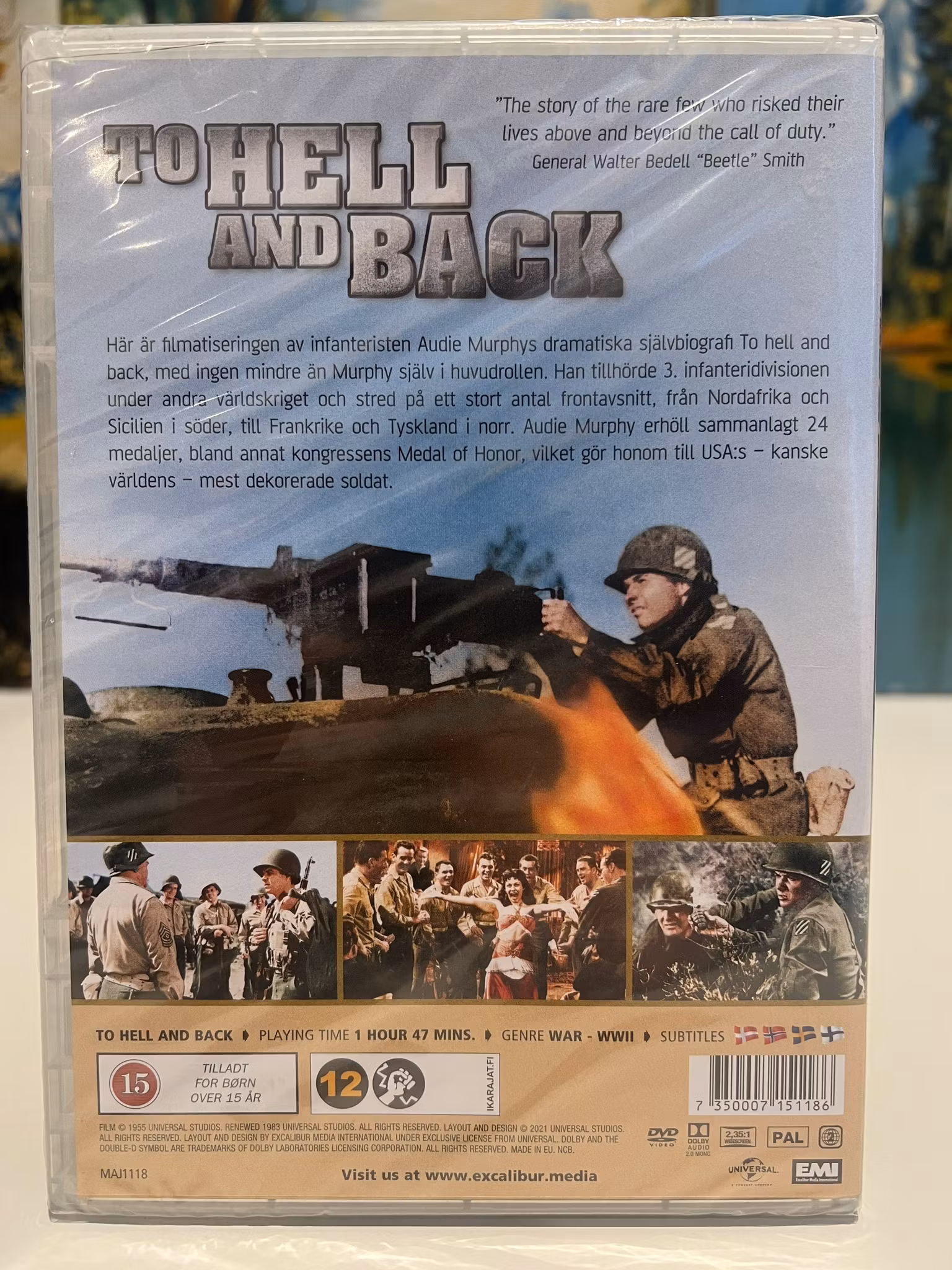 Vi fÄr följa hans resa frÄn en fattig uppvÀxt i Texas till de blodiga slagen i Nordafrika, Italien och Frankrike. Filmen skildrar hans enastÄende mod och ledarskap som gav honom inte mindre Àn 24 medaljer, inklusive Congressional Medal of Honor. En tidlös krigsklassiker som var Universals mest inkomstbringande film i över 20 Är (tills Hajen kom).