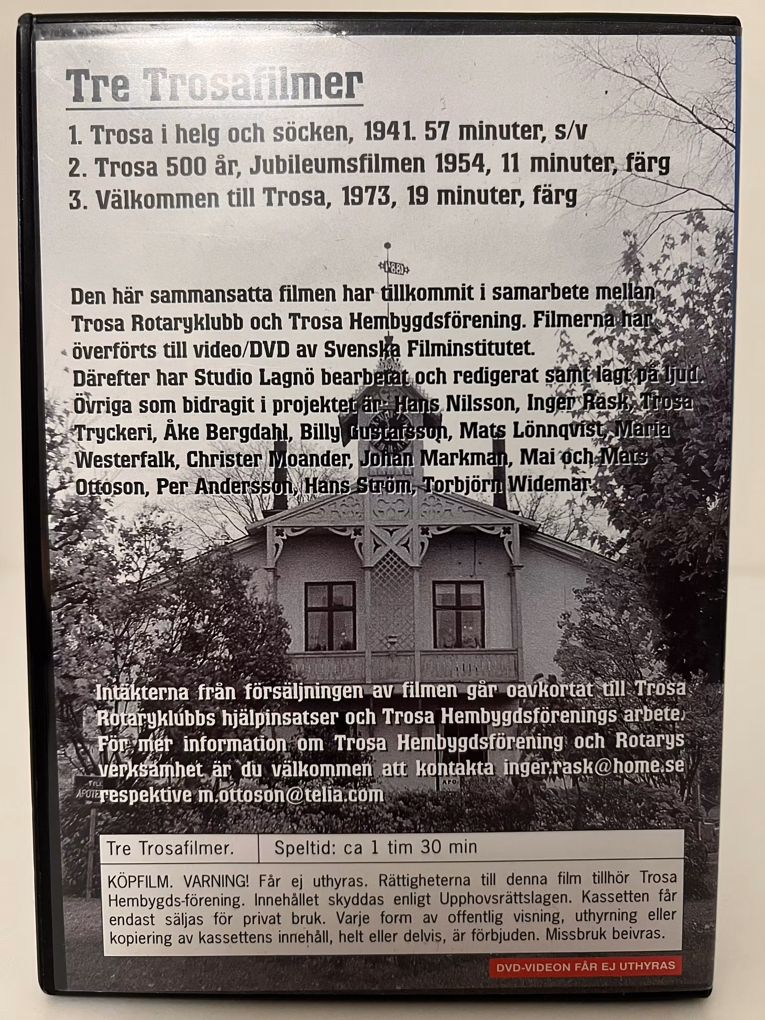 Denna sammansatta film Àr en lokalhistorisk guldgruva som tillkommit genom ett samarbete mellan Trosa Rotaryklubb och Trosa Hembygdsförening. Filmerna har omsorgsfullt överförts till digitalt format av Svenska Filminstitutet för att bevara stadens historia för framtida generationer.