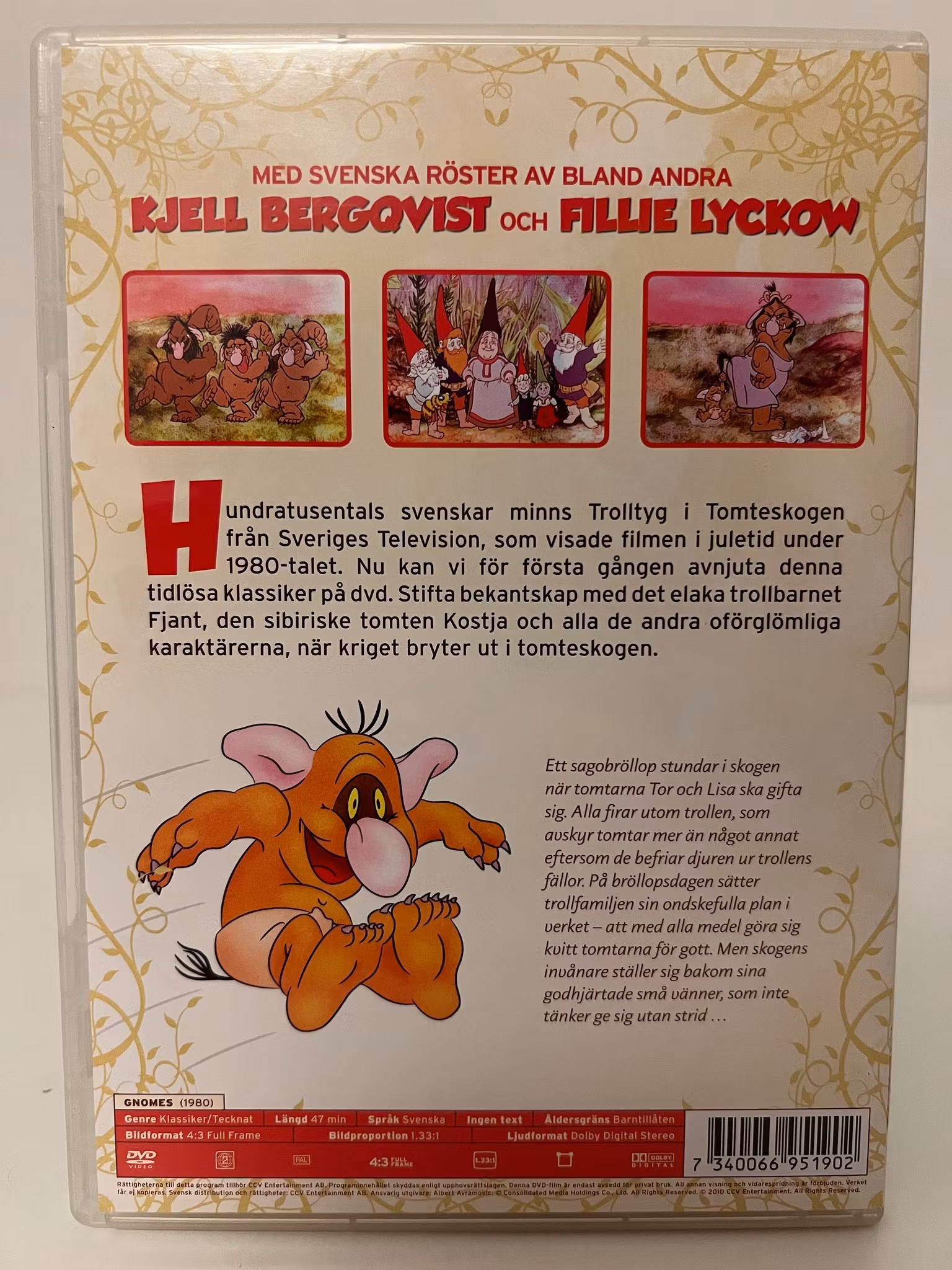 Hundratusentals svenskar minns Trolltyg i Tomteskogen frÄn Sveriges Television, som visade filmen i juletid under 1980-talet. Nu kan du för första gÄngen njuta av denna Àlskade saga pÄ DVD och Äterstifta bekantskapen med det elaka trollbarnet Fjant, den sibiriske tomten Kostja och alla de andra oförglömliga karaktÀrerna.