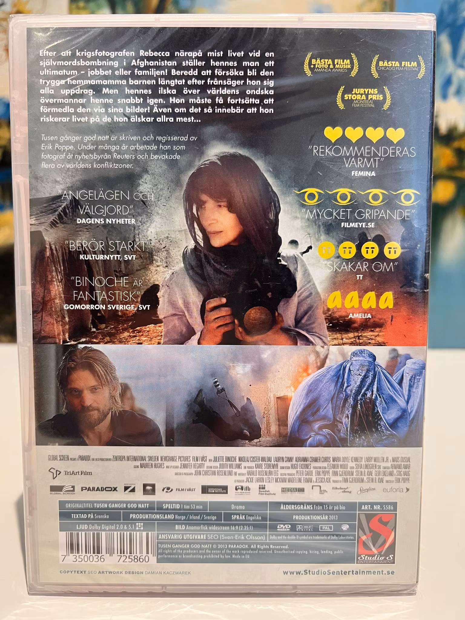 Tusen gÄnger god natt Àr skriven och regisserad av Erik Poppe, som under mÄnga Är arbetade som fotograf Ät nyhetsbyrÄn Reuters och bevakade flera av vÀrldens konfliktzoner.