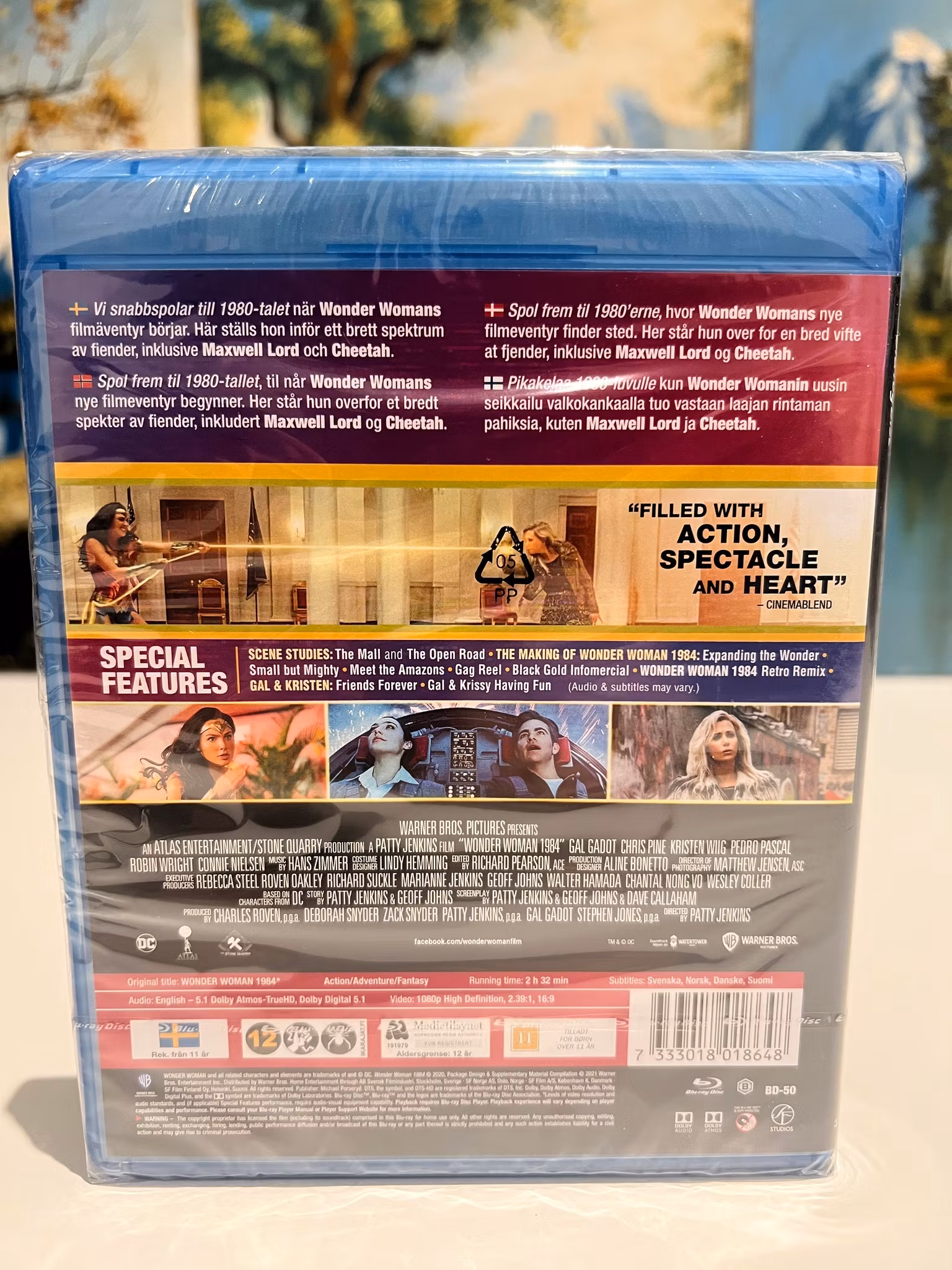 Special Features: Scene Studies: The Mall and The Open Road, The Making of Wonder Woman 1984: Expanding the Wonder, Small but Mighty, Meet the Amazons, Gag Reel, Black Gold Infomercial, Wonder Woman 1984 Retro Remix, Gal & Kristen: Friends Forever, Gal & Krissy Having Fun.