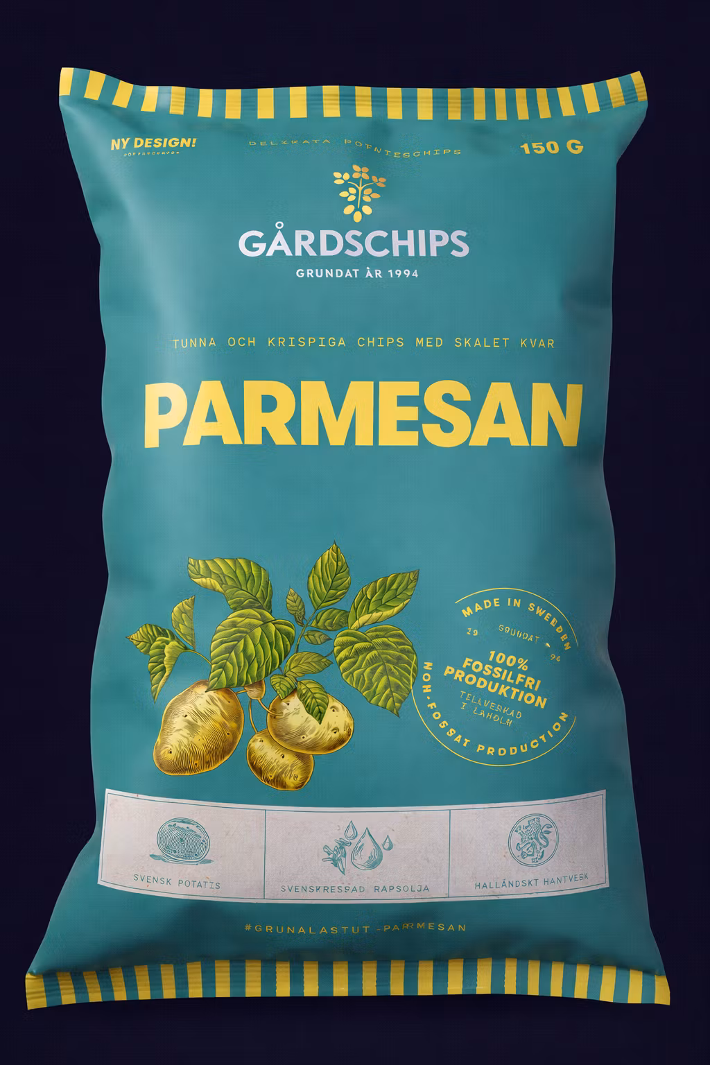 Gårdschips Parmesan är mer än bara ett snacks – det är en hyllning till bra råvaror. Genom att använda äkta Parmigiano Reggiano får chipsen en smakdjup som vanliga ostchips sällan når. Den halländska potatisen friteras i små omgångar för att säkerställa kvaliteten i varje påse.